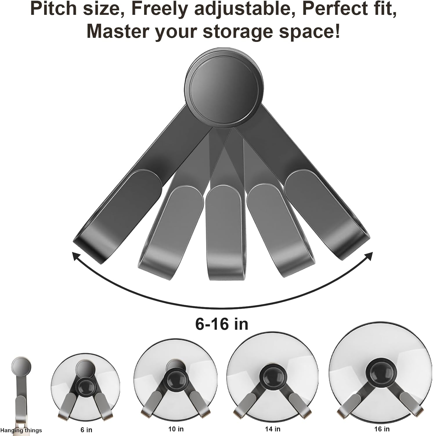 - Adjustable & Versatile – Pot cover holder rack fits 6-16" lids and works on smooth surfaces like tile, marble, or metal walls. Not suitable for cracked, rough, textured, glass, or plaster walls.