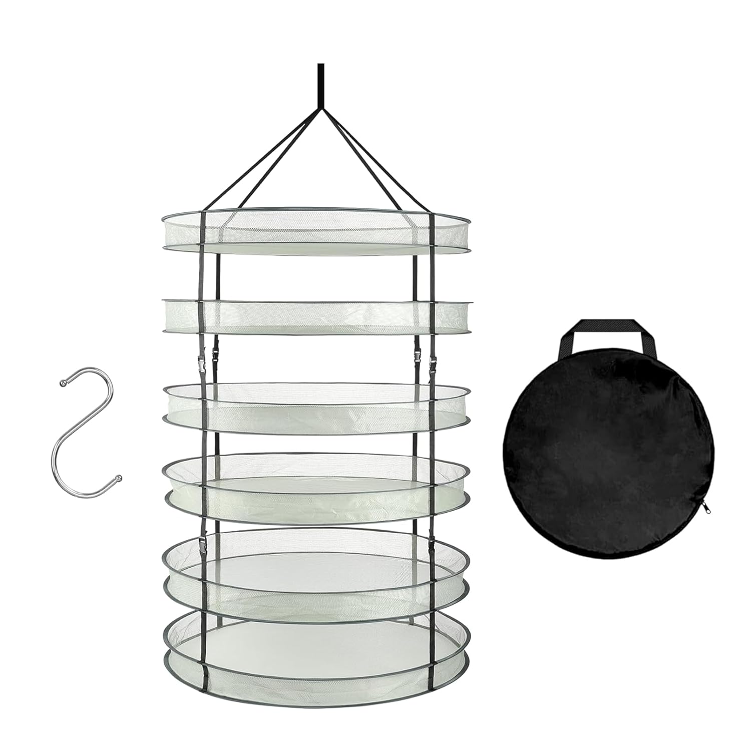 Simple Deluxe 6 Layer 36'' Herb Drying Rack with Hook, Detachable Design Hanging Dry Mesh Folding Basket Dryer for Clothes, Herbs