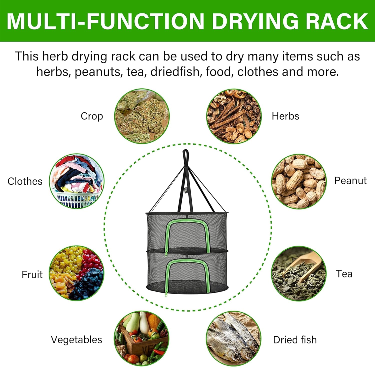Simple Deluxe 2 Layer 24'' Herb Drying Rack with Hook, U-Zippered Design Hanging Dry Mesh Folding Basket Dryer for Clothes, Herbs